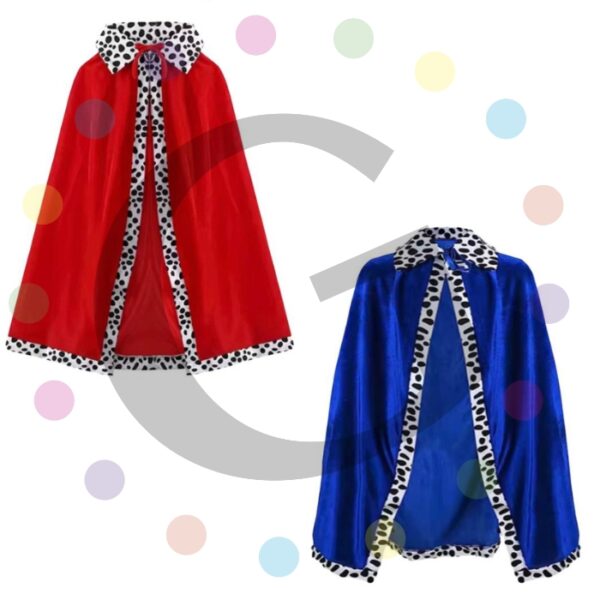 Capa de Tela para niño. Disponible en: rojo y azul. Unitalla. No incluye corona.