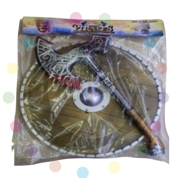 Escudo y Hacha Vikinga de plástico. Único color. Unitalla.