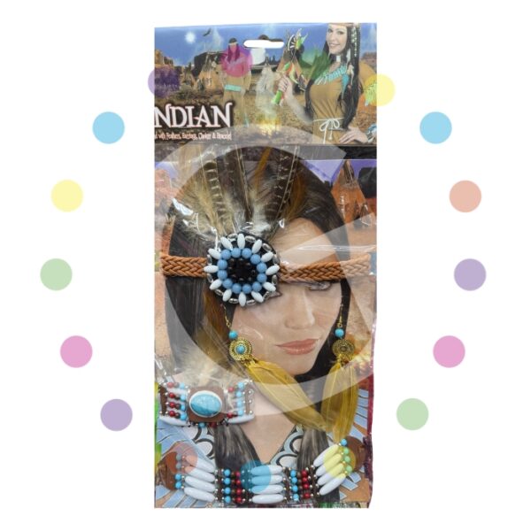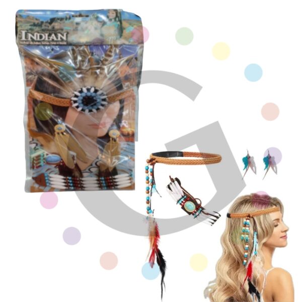 Incluye aretes, Tiara con plumas y Gargantilla. Unitalla. Único color.