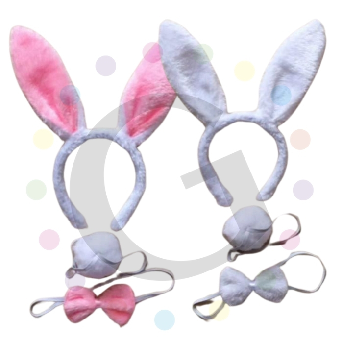 Incluye: Orejas, Moño y colita. Unitalla. Disponible en Blanco y Rosa.
