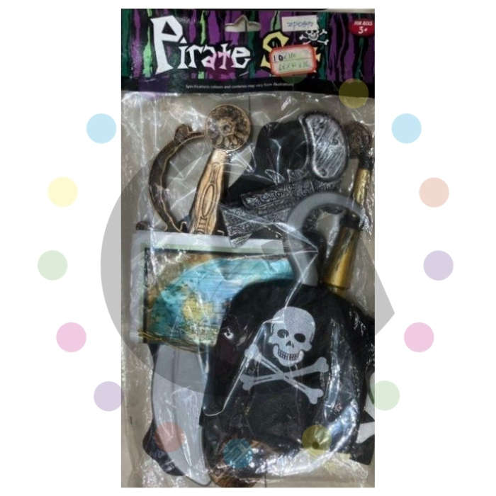 Incluye: Esapada, Pistola, Gorro, Garfio, Cofre, Mapa y Telescopio Pirata.