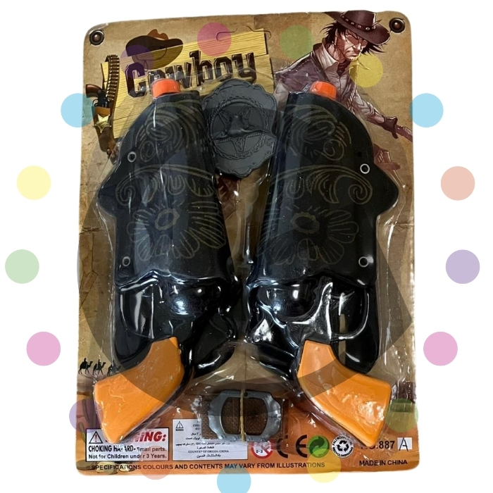 Incluye: 2 pistolas de juguete, 1 cinturón y 1 placa de Sheriff.